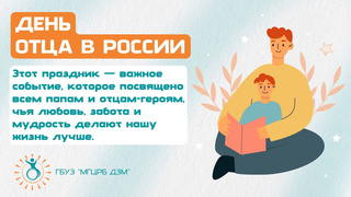 💕 Дорогие друзья! Сегодня в России отмечают День отца! День в честь сильных, заботливых и любящих отцах — это важный вклад в будущее наших детей и общества. ... Читать дальше »Просмотров: 9 Дата публикации: 19.10.2025